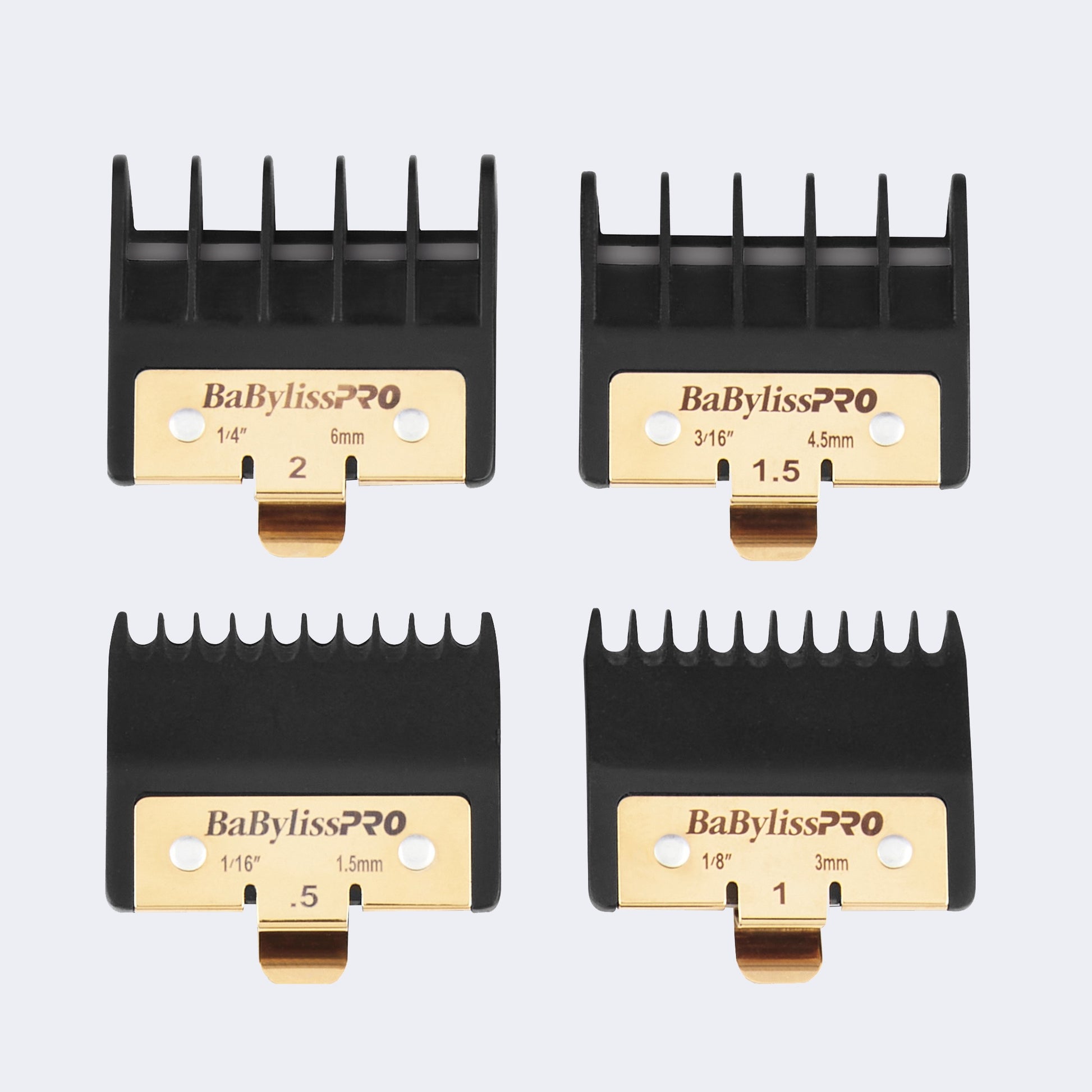 Elevate your grooming precision with the Premium Trimmer Guards. These guards are meticulously crafted to provide consistent and precise cutting lengths, ensuring flawless haircuts. Designed for durability and compatibility with various BaBylissPRO trimmers, they are an essential choice for professional barbers and stylists.